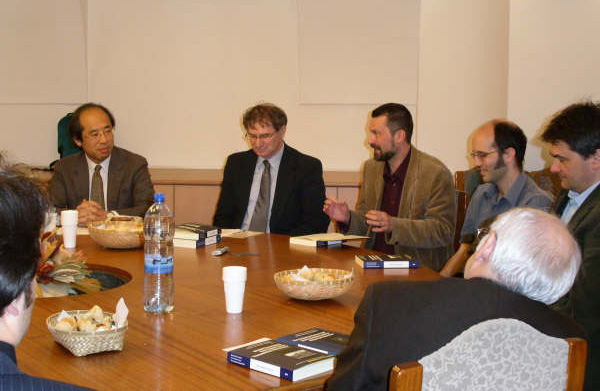 当日はサルカ・ラースロー少数民族研究所長(写真、左から2人目)の司会の下、第4巻についてパプ・アンドラーシュ氏が、第9巻についてカーントル・ゾル ターン氏(左から3人目)がそれぞれ紹介と批評をおこないました。また筆者は二巻の刊行目的と日本での研究状況について話をしました。1時間あまりのセミ ナーでしたが、30名ほどの出席があり、地位法への関心の高さがうかがえました。