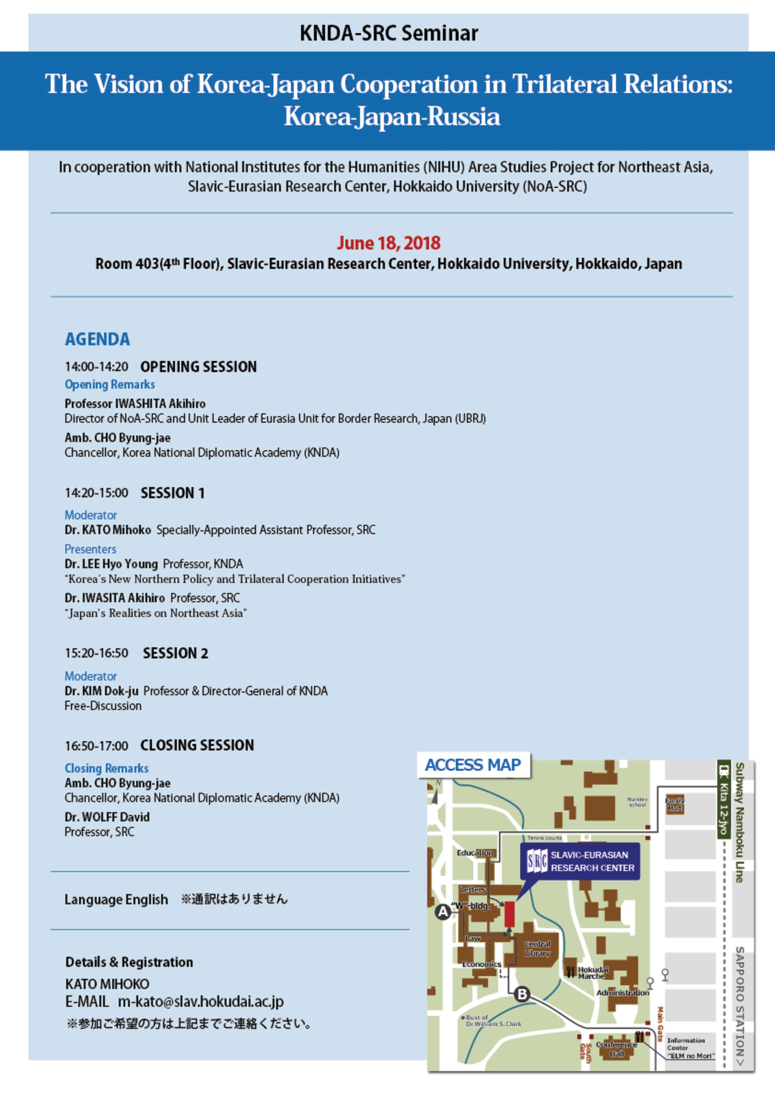 [Co-hosted event] KNDA-SRC Seminar “The Vision of Korea-Japan Cooperation in Trilateral Relations: Korea-Japan-Russia” will be held on June 18, 2018.