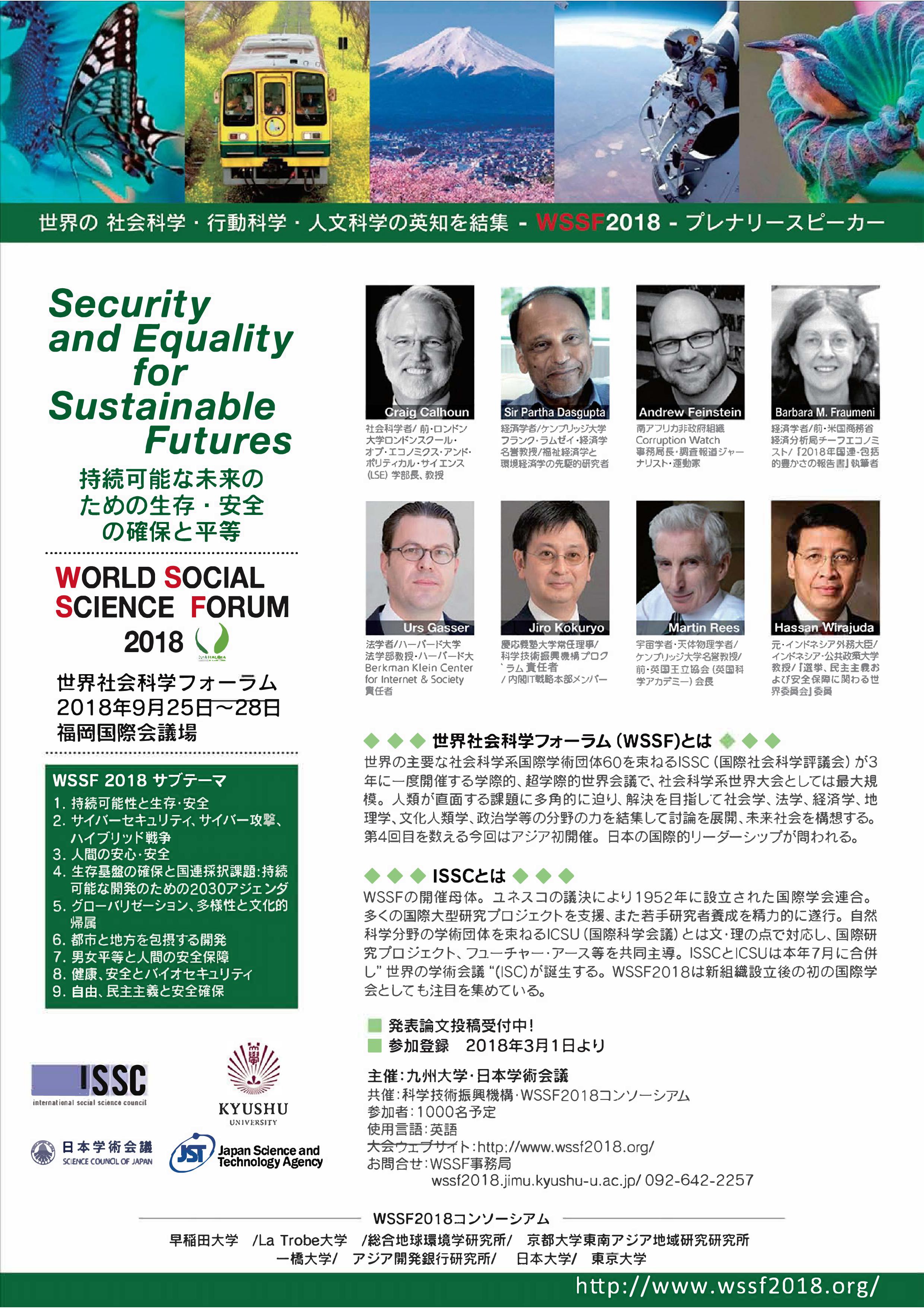 【関連イベント】第4回世界社会科学フォーラム(WSSF)開催のお知らせ(2018年9月25-28日、福岡)