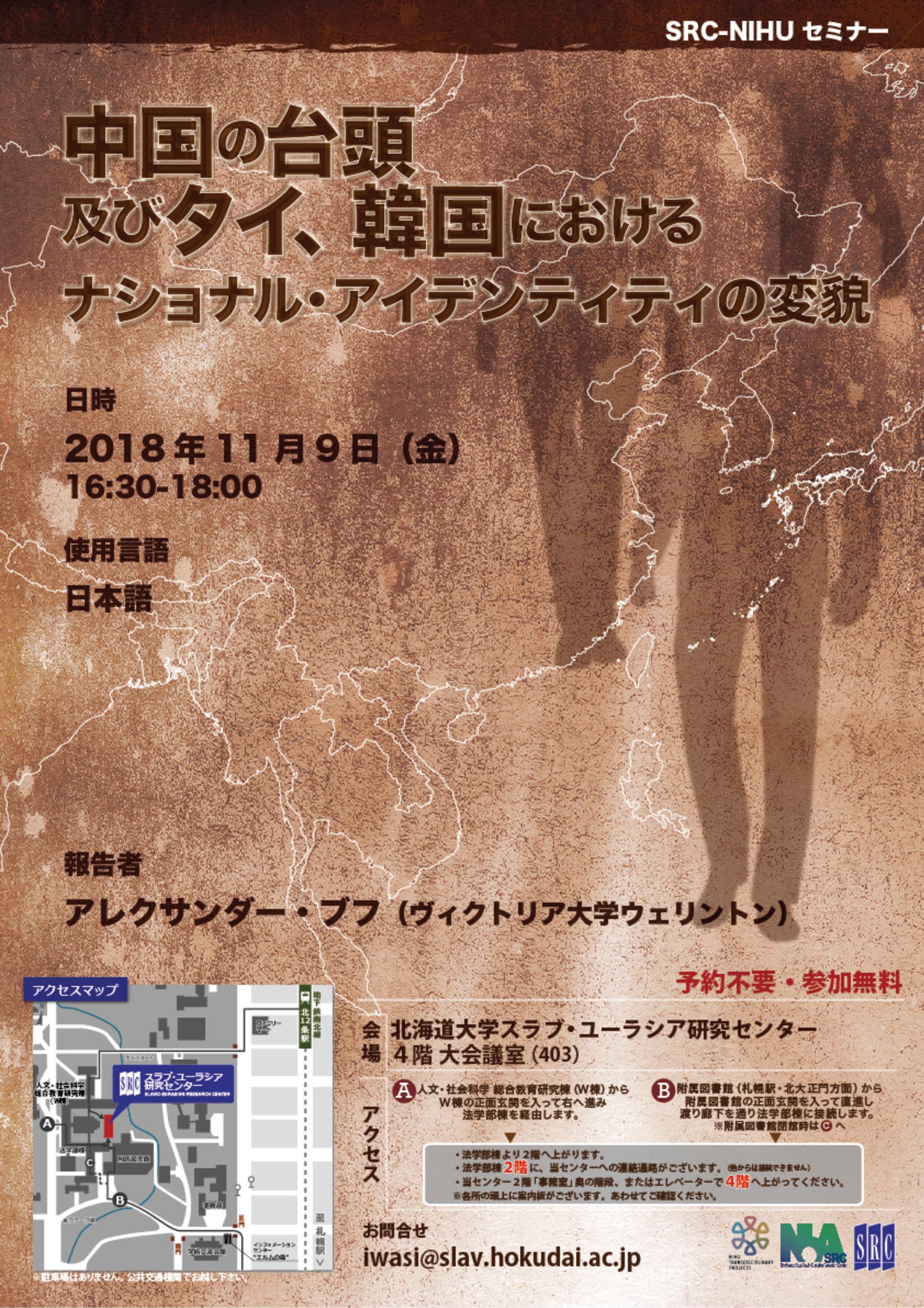 【主催:SRC-NIHUセミナー】アレクサンダー・ブフ「中国の台頭及びタイ、韓国におけるナショナル・アイデンティティの変貌」(2018.11.09)