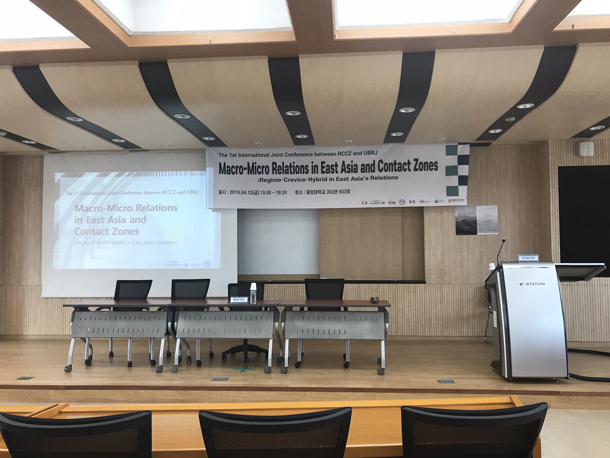 2019年4月12-13日に韓国の中央大学校で国際会議「Macro-Micro Relations in East Asia and Contact Zones: Regime・Crevice・Hybrid in East Asia’s Relations」が開催されました。本会議は、中央大学校に2018年に創設された「境域における和解と共生研究センター」(Reconciliation and Coexistence in the Contact Zones (RCCZ) Research Center) と北海道大学スラブ・ユーラシア研究センター境界研究ユニット(UBRJ)の共催でした。【プログラムはこちら】