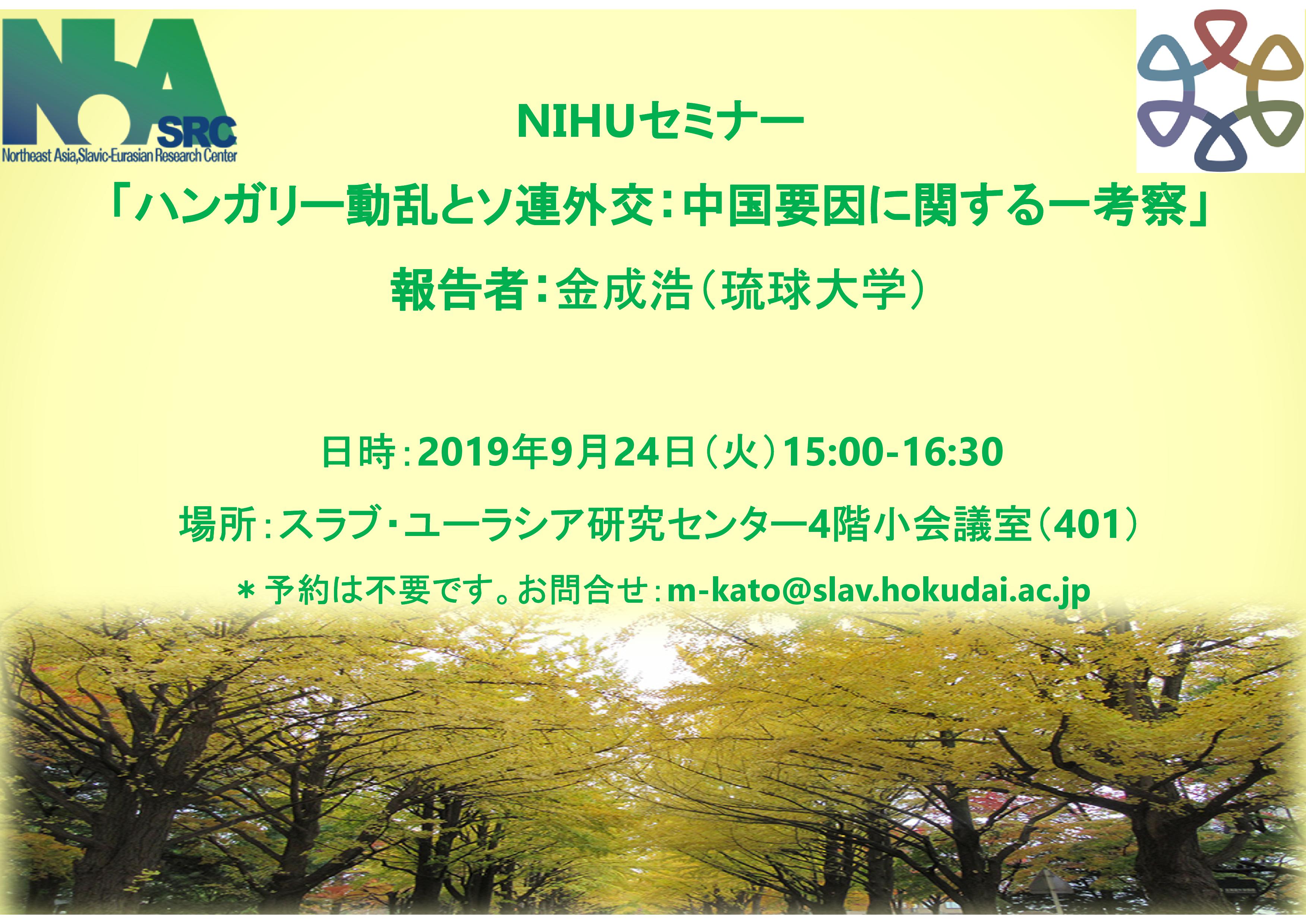 【主催】2019年9月24日開催 NIHUセミナー「ハンガリー動乱とソ連外交:中国要因に関する一考察」