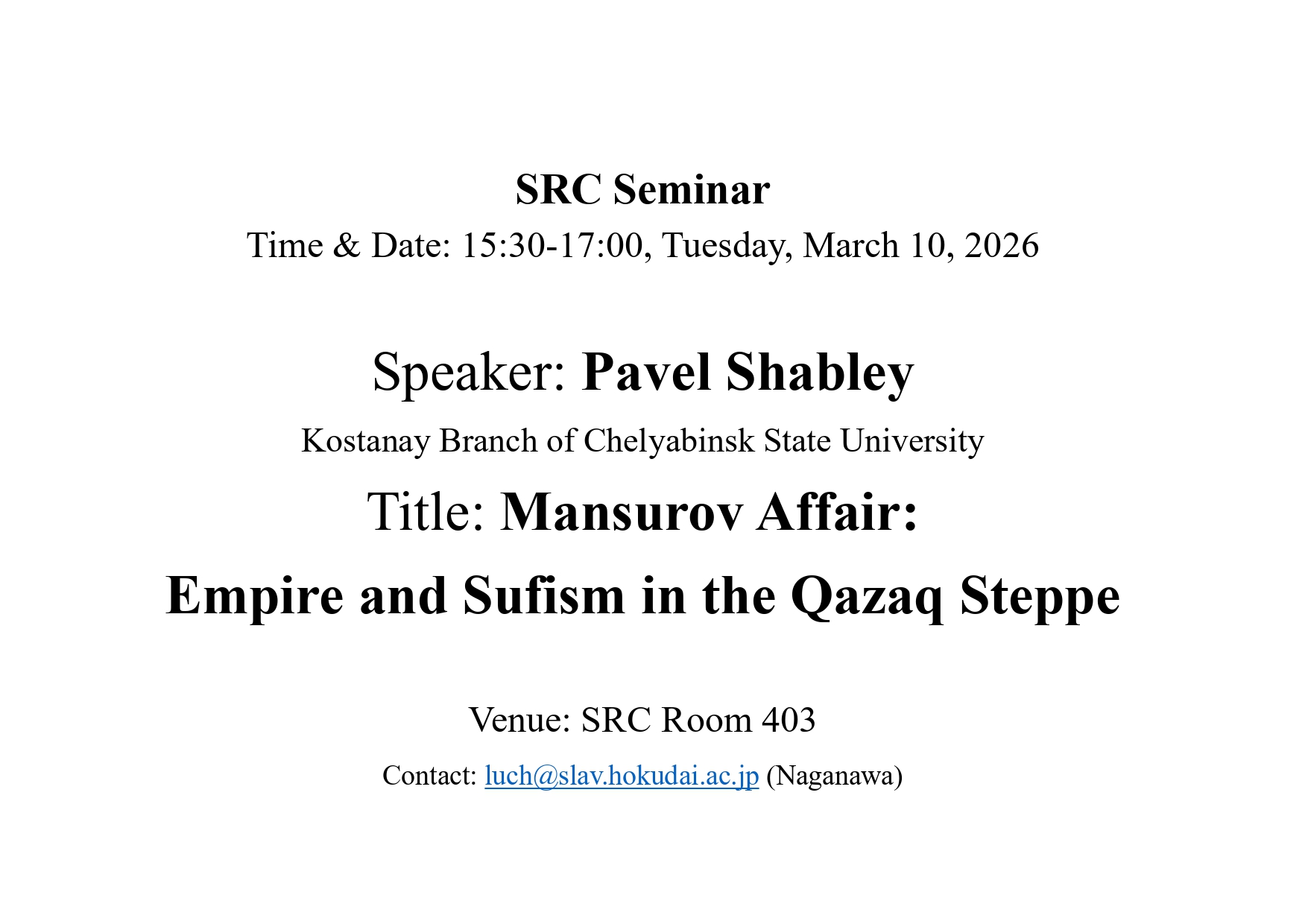 “Mansurov Affair: Empire and Sufism in the Qazaq Steppe”